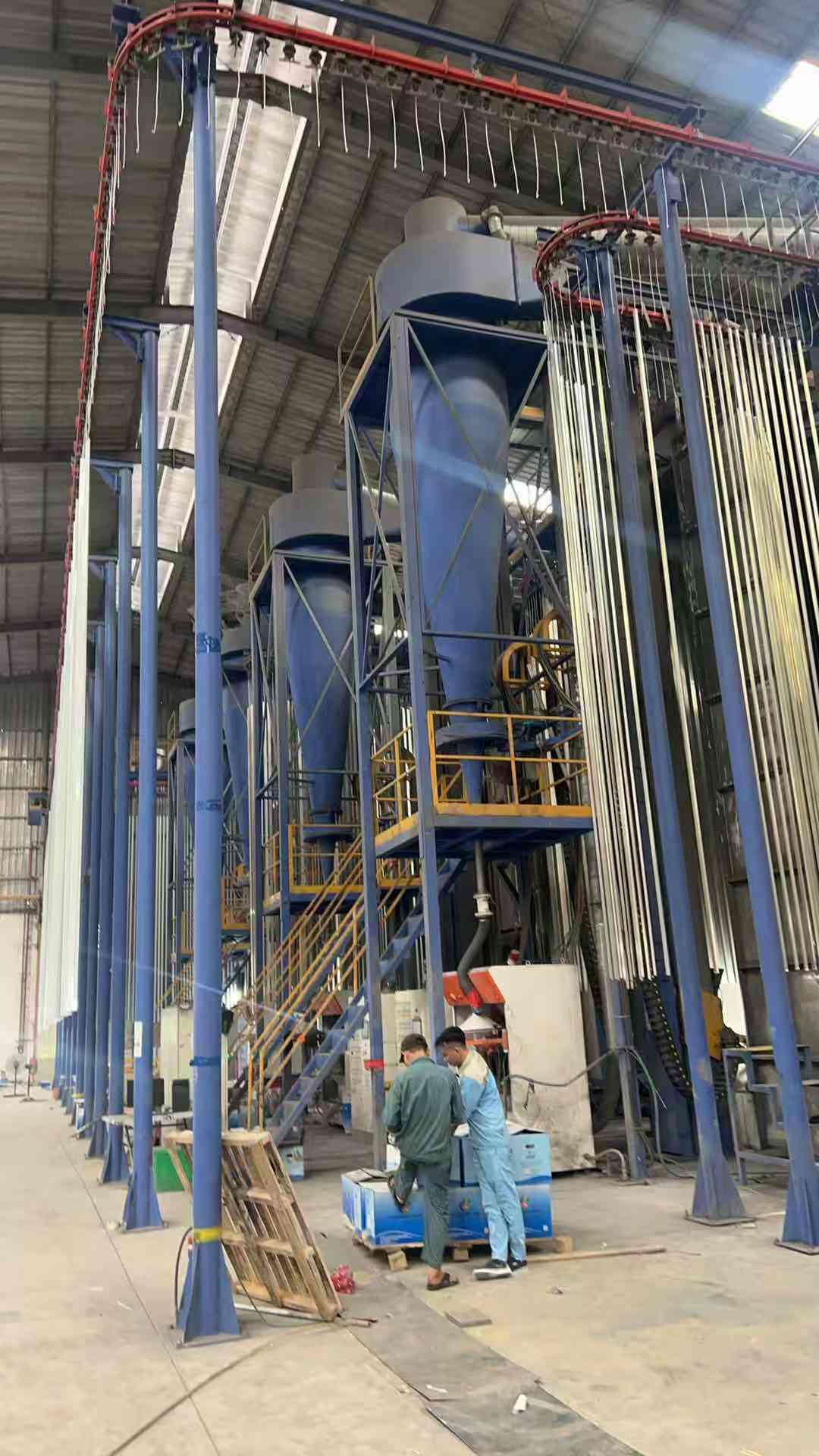 Merkmal: Automatische vertikale Pulverbeschichtungsanlage für die Oberflächenbehandlung von Aluminiumprofilen. Spart Gas und Energie, spart Platz. Hohe Qualität, hohe Produktivität, glatte und haltbare Beschichtung.