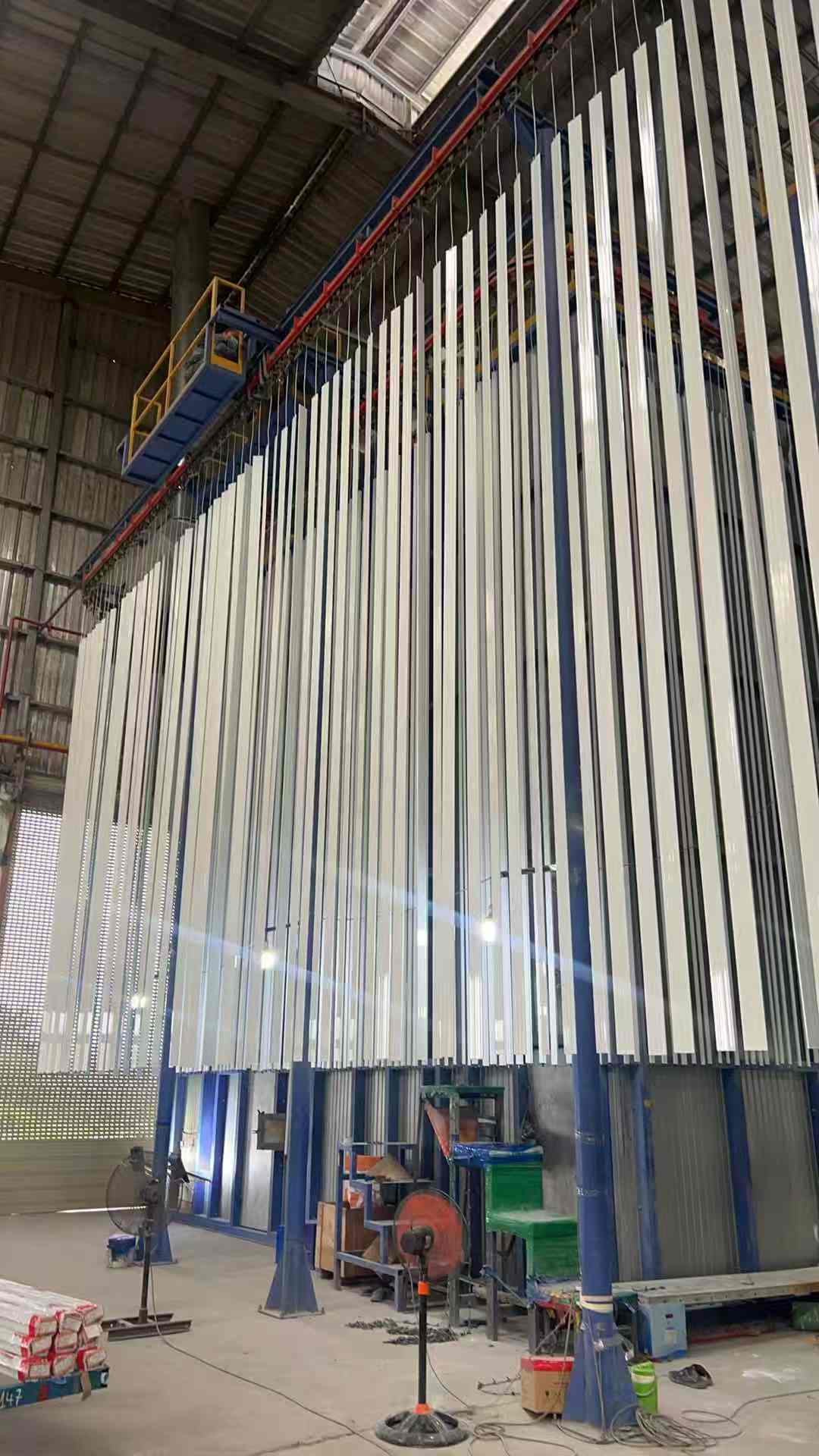 Merkmal:Automatische vertikale Pulverbeschichtungsanlage für Aluminiumprofil-Oberflächenbehandlungsgeräte. Spart Gas und Energie, spart Platz. Hohe Qualität, hohe Produktivität, glatte und haltbare Beschichtung.